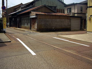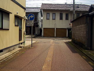 ここは寺町の寺町通りが急に細くなるところのT字路です。車通りは少ないですが、見通しが悪いので、飛び出すととても危険です。ここを通るときは、車がくるかこないか確かめて通るようにしてください。
