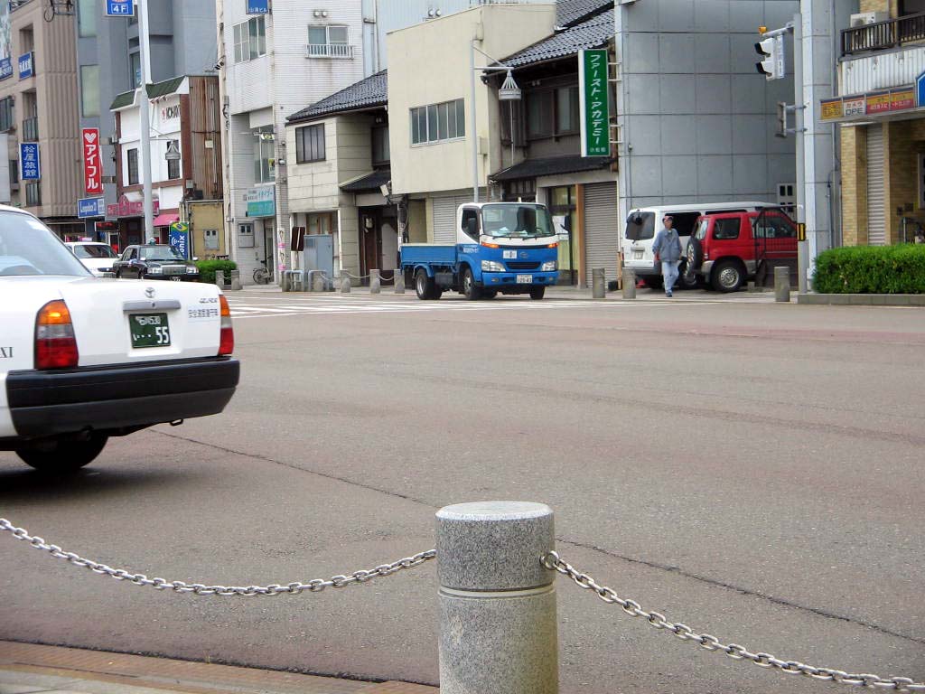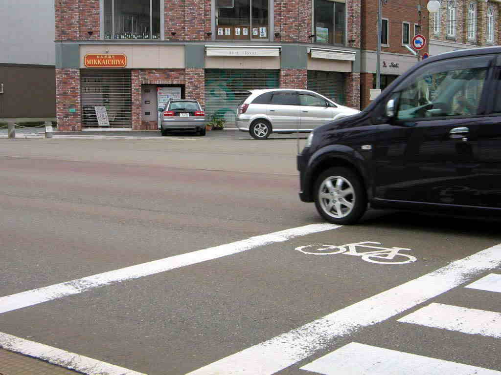 ここは駅前通りです。人通りがとても多く、電車におくれそうになって、急ぐ人もいっぱいいます。おたがいに急いでいるので、歩いている人と自転車がぶつかりそうになることがよくあります。だから、ここを通るときは、気をつけて通ってください。