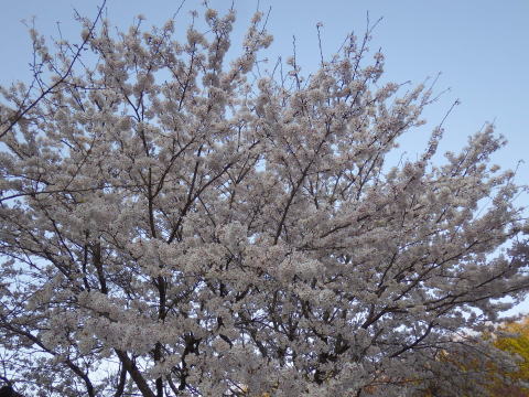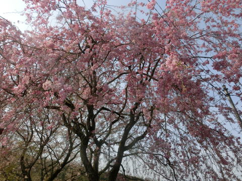 自転車小屋横のシダレザクラが満開になりました。生徒が見てくれないのが残念です。