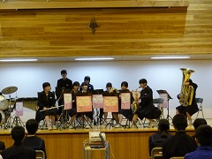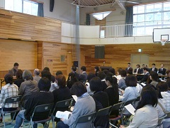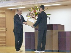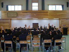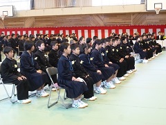 ○平成25年度入学式(4月5日) 35名の新入生が入学しました。広域通学制度により、7名の生徒が校区外より入学しています。 入学式の後、小松警察署・小松市交通安全協会連合会より、反射たすきの贈呈を受けました。 |