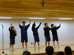 ○新入生歓迎会(4月8日) 生徒会役員が生徒会活動について、部活動紹介を各部が趣向を凝らして行い、新入生に中学校生活の紹介をしました。 |