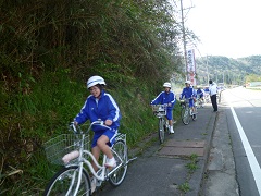 ○千恵子桜見学サイクリング(4月19日) 11日に予定していましたが雨天順延で、19日に実施しました。時期が遅れ、残念ながら満開は過ぎ、わずかの花しか残っていませんでしたが、校区の自然に触れることができました。 |