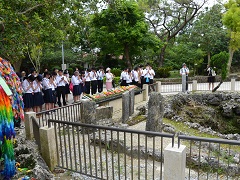 ○3年修学旅行(5月22日〜24日) 小松空港−那覇空港の航空ダイアが、小松空港発が9時台から15時台に変更になったため、今年度が最後の沖縄修学旅行となりました。 学校に午前4時30分集合し、バスで中部国際空港に移動するハードな日程で、2日目は大雨にあう悪条件となりましたが、生徒たちは有意義で楽しい時間を過ごしました。 |