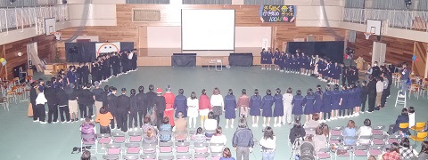 11月3日(日・祝)に、体育館にて文化祭を開催しました。事前の2週間の限られた期間で、1人1役で全校生徒が一丸となって、文化祭を作り上げることができました。 また今年度は実行委員会が中心となって、全校生徒と全教職員で「恋するフォーチュンクッキー」の松東中学校版のビデオを作成し、フィナーレで放映し、とても好評でした。 |