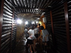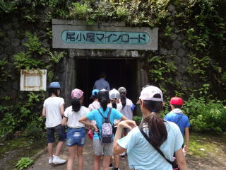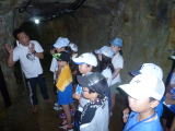次にバスに乗って尾小屋鉱山資料館、マインロードを見学しました。方鉛鉱の重さに驚いたり、坑道の中の涼しさに感動していました。