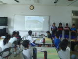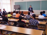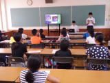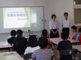 松東中学校会議室で開始式をした後、生徒会による学校紹介がありました。
