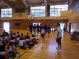 開始式。みんな緊張しています。 本校生徒による学校紹介 これがオパールです。鉱山資料館にて