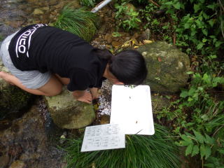 次は西俣自然教室で川遊び。水棲生物を捕まえたり石をけずって曲玉を作ったりしました。