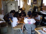 平成28年も7月の終わりと8月のはじめの2回行われました。色々な学校から1回目は11名、2回目は19名の小学生が尾小屋マインロード見学、部活動体験、絵付け教室、和菓子作り、木工、抹茶教室などの色々な体験を行いました。 |