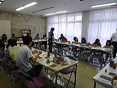 3名の講師の方と、4名の海外からの留学生との交流を通して、様々な国の文化を体験しました。 2日目は九谷焼のマイカップ作りを行いました。 |
