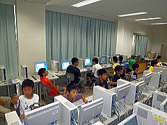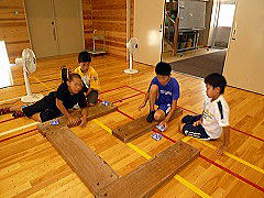 パソコンでのプログラミングで自動制御する。モーターカーでの迷路脱出コンテスト。 尾小屋鉱山資料館の見学と、鉱物採取体験。体育館でのレクレーション等を通して、お互いの親睦を深めると共に、ロボットや鉱物への理解を深めました。 |