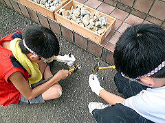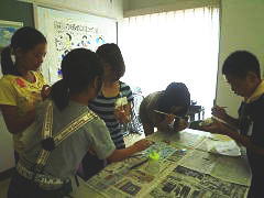 野外観察は猛暑のため中止 とっても上手! 次はロケット作り