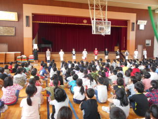 | 5月の全校集会では、笑顔がいっぱいの学校にするために、プラス言葉を意識して使っていこうというお話を聞きました。また、任命式では、委員会の委員長、副委員長、書記と4年生以上の学級代表が任命されました。今月の歌は、2年生が、「校歌」を元気いっぱい歌ってくれました。 児童集会では、新しい児童会のメンバーの司会のもと、委員長が各委員会のスローガンやお願いを堂々と話しました。各学年代表の振り返りも、自分の言葉で頑張りたいことを話すことが出来ました。 今年度初めての集会でしたが、静かな中でスタートできました。 ![]() ![]() |