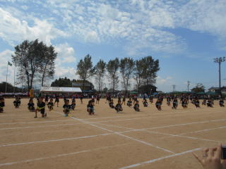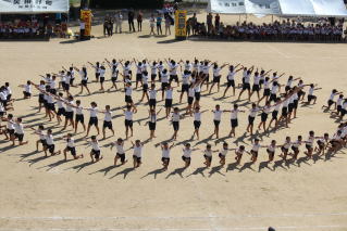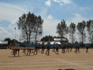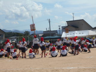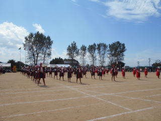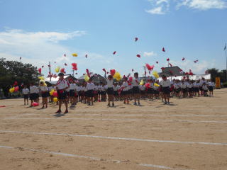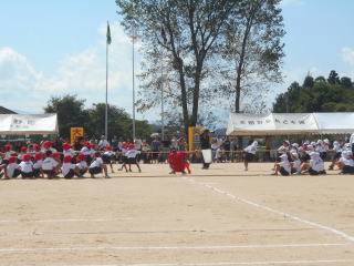 運動会が開催されました。赤組と白組が接戦を繰り広げ、力いっぱい、競技や演技を行いました。